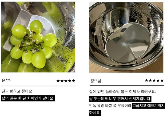 • 특징: 올스텐 + 타공 설계 + 멀티용도 (쌀, 과일, 채소, 면 등)
