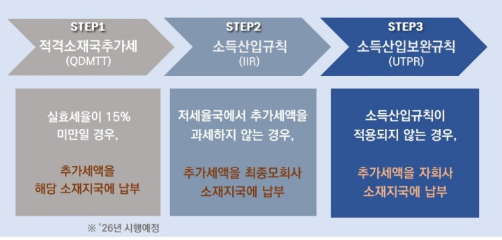 - 저 세율국에서 실효세율 15% 미만으로 과세되는 경우, 모회사 소재지 국가 등에서 추가 납부