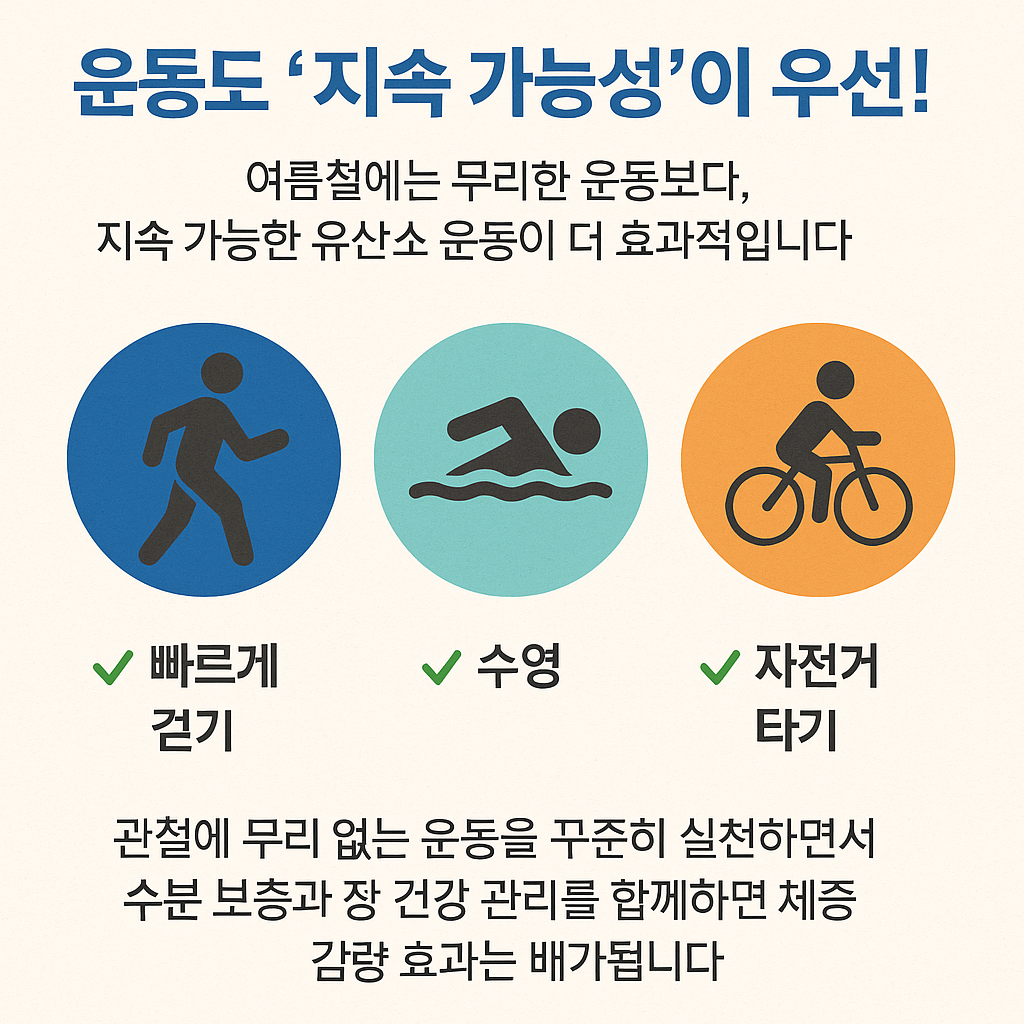 여름철에는 무리한 운동보다, 지속 가능한 유산소 운동이 더 효과적입니다.