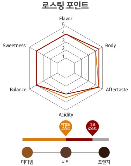 - 산미 없이 부드럽고 고소한 맛의 마일드 로스팅