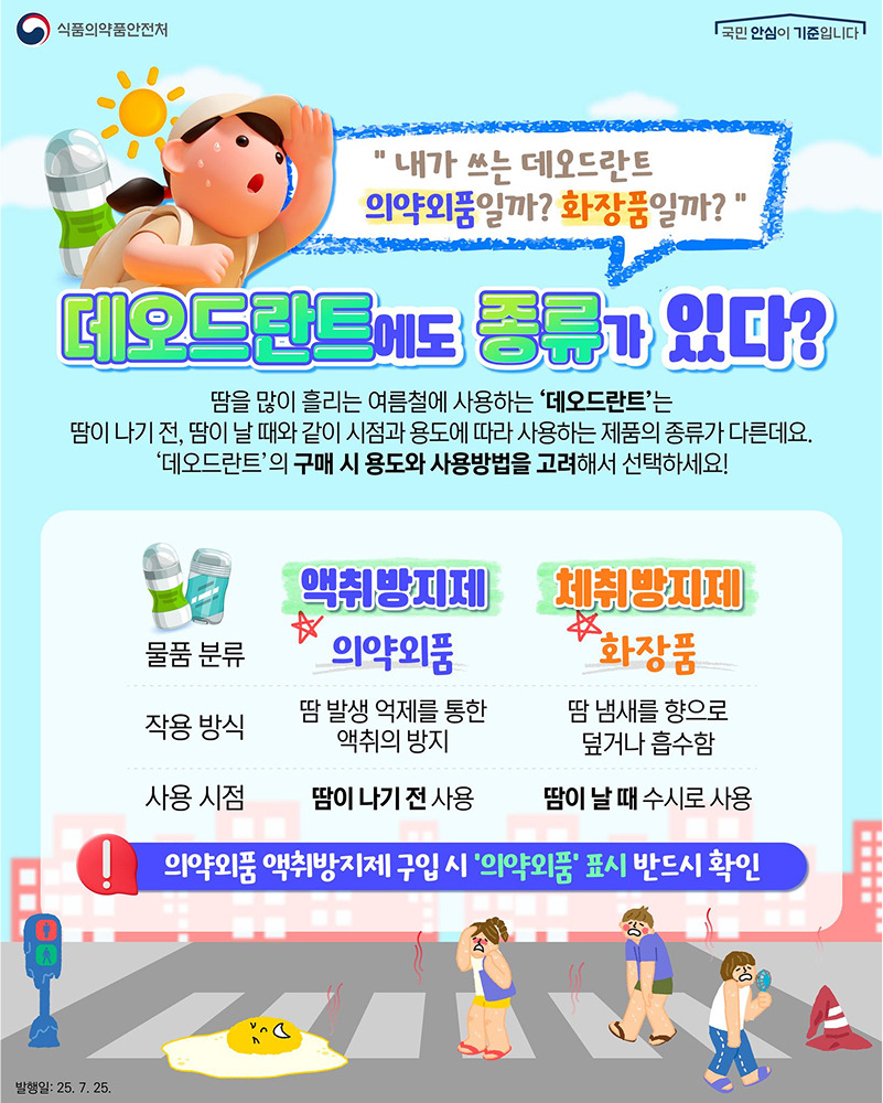 오늘은 식약처 공식 정보를 바탕으로 데오드란트의 종류를 정확히 파악하고, 그에 맞는 제품을 소개해드립니다 😊