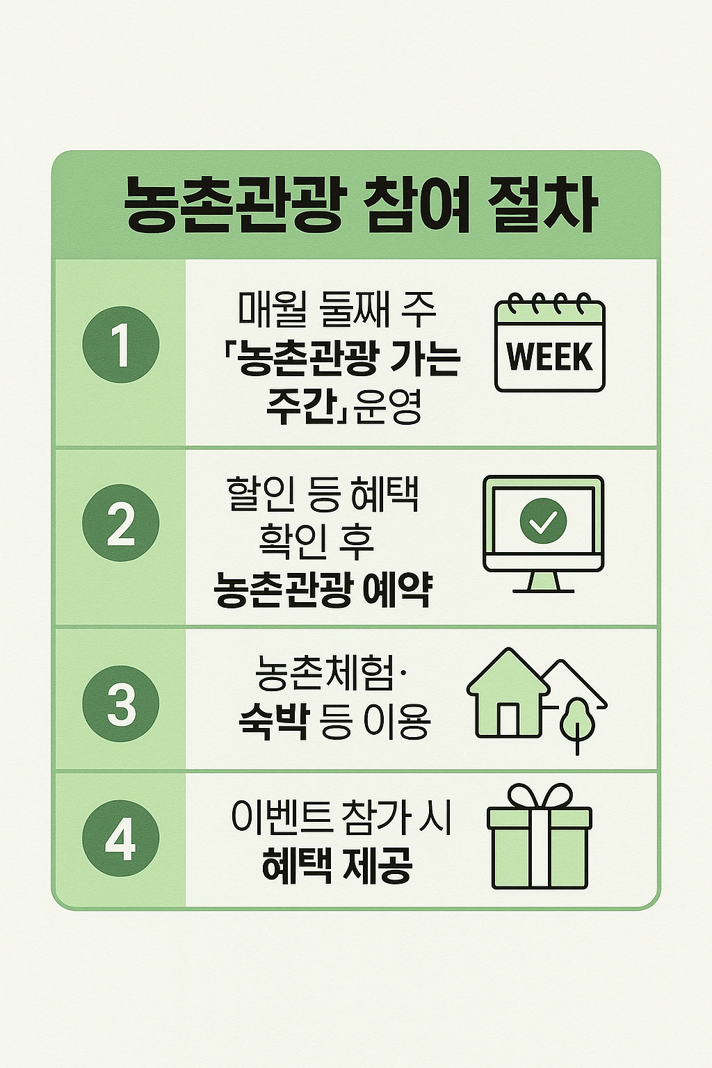 - 목적: 민생회복 소비쿠폰과 연계해 국민 여가·여행 소비를 농촌으로 유도, 지역경제 활력 제고