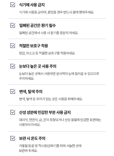 - 환기가 잘 되는 공간에서 사용하고, 보호장갑을 착용하면 피부 자극이 줄어듦