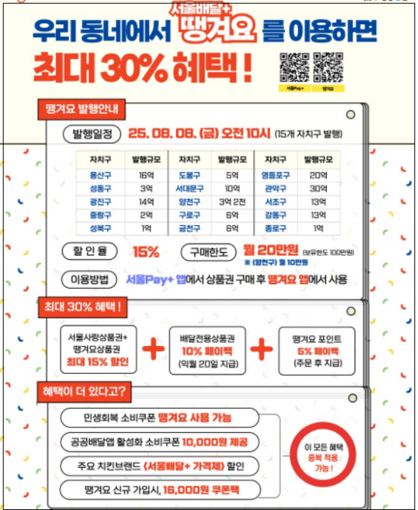 서울시는 2025년 8월부터 15개 자치구에서 총 143억 원 규모의 배달전용상품권을 15% 할인된 가격으로 추가 발행합니다.