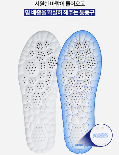 - 특징: 통기성, 충격흡수, 발바닥 압력 분산