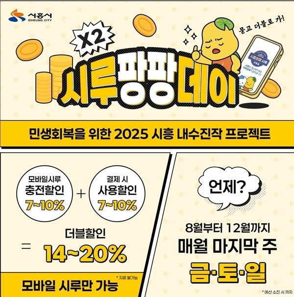 이번 시루팡팡데이는 단순한 할인 이벤트가 아니라, 시민의 가계 부담 완화와 지역 상권 살리기를 동시에 달성하는 착한 정책입니다. 👍