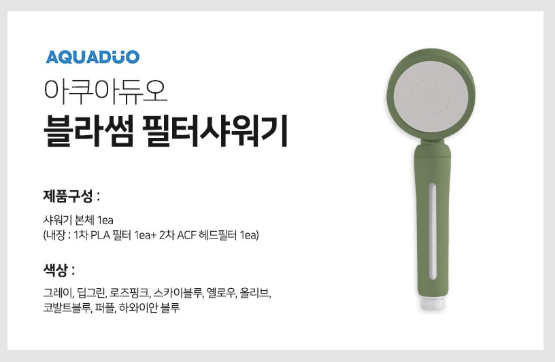 아쿠아듀오 블라썸 샤워기는 **친환경 필터, 세련된 디자인, 물 절약 기능**까지 갖춘 합리적인 욕실 업그레이드 아이템입니다. 속 시원한 샤워 여정, 이 샤워기부터 시작해 보세요!