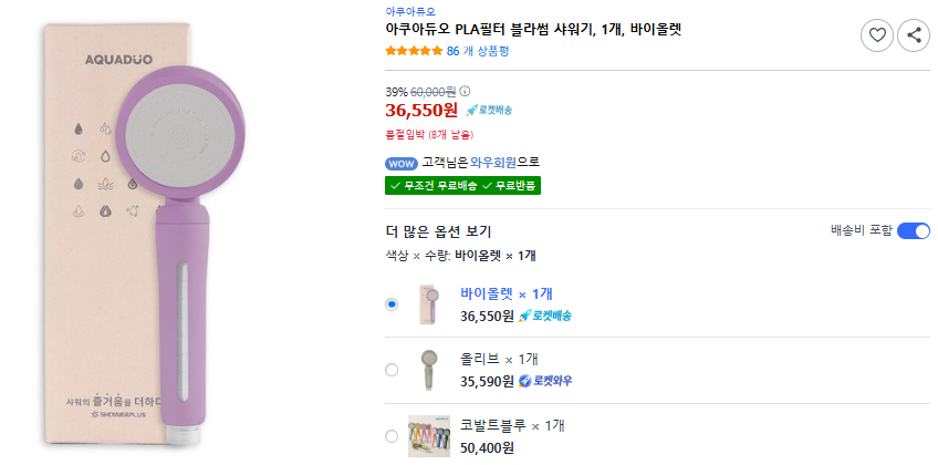 - 🚿 향기로운 블라썸 디자인 – 욕실 인테리어 효과까지 잡는 감성 색상 (바이올렛)