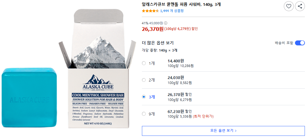 알래스카큐브 쿨멘톨 퍼퓸 샤워바 140g ×3 사용 후기