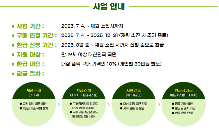 • 정책명: 2025년 으뜸효율 가전제품 구매비용 환급사업