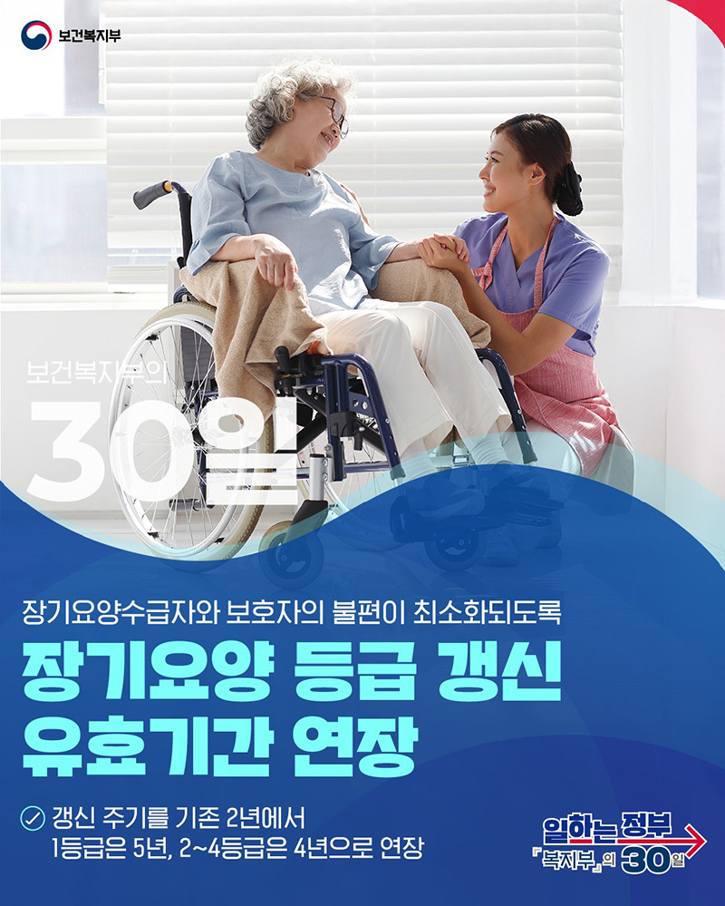 장기요양 수급자의 등급 유효기간이 대폭 연장되었습니다.