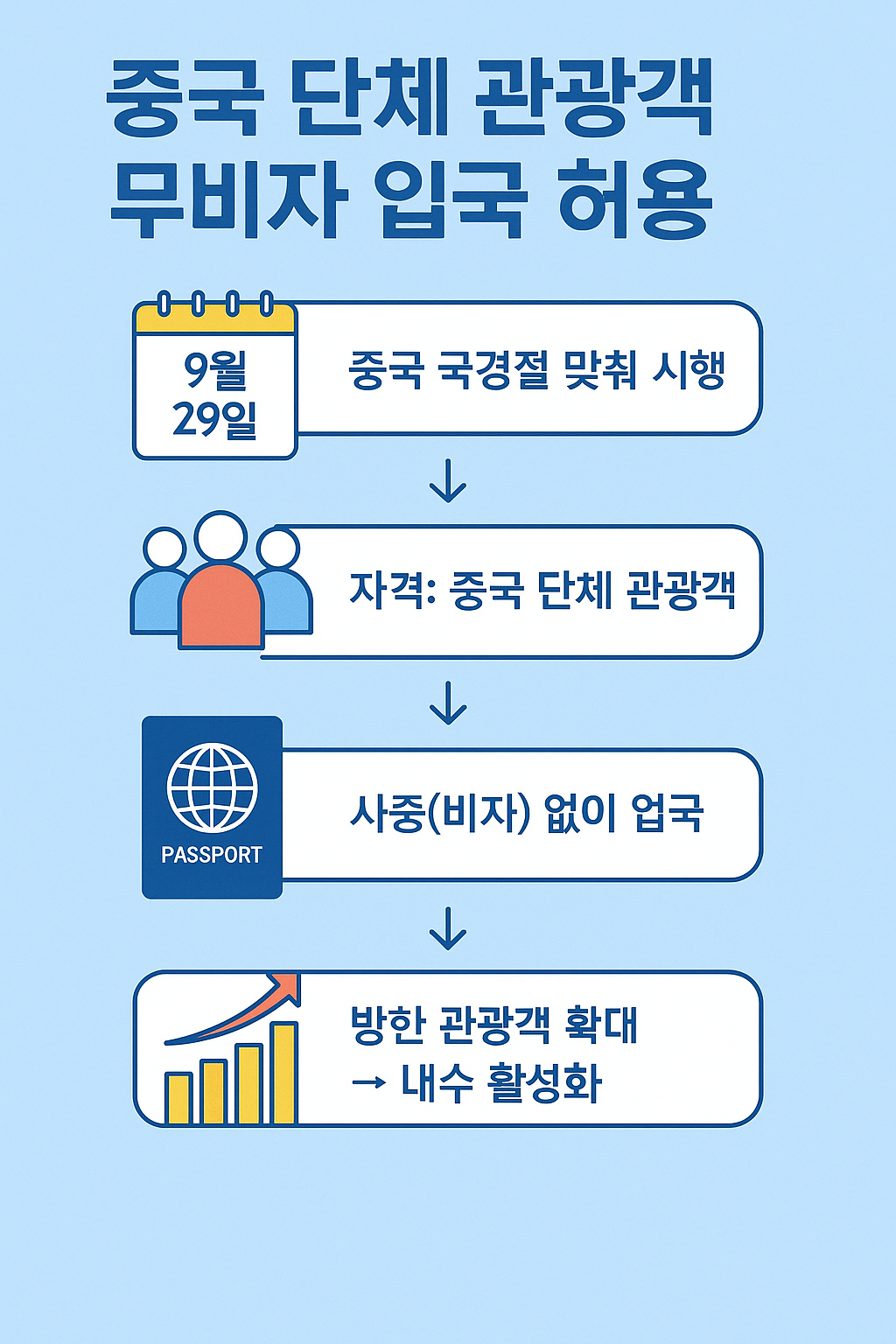 - 🇨🇳 중국 단체 관광객 무비자 입국 허용 (2025.9.29 ~ 2026.6.30)