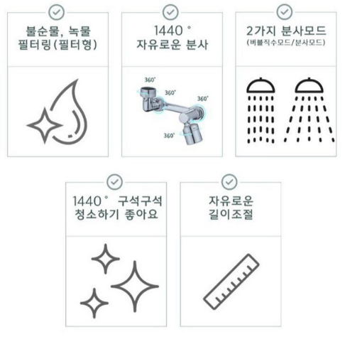 • 360도 회전 – 원하는 각도로 물줄기 조절 가능