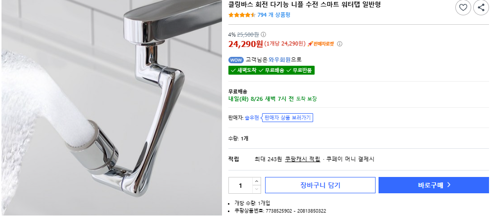 💧 주방,욕실 필수템 등극! 클링바스 회전 다기능 니플 수전 스마트 워터탭 일반형 사용 후기