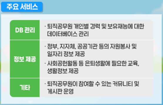 한 마디로, 공직 은퇴 후 ‘인생 2막’을 위한 통합 지원 플랫폼인 셈이죠.