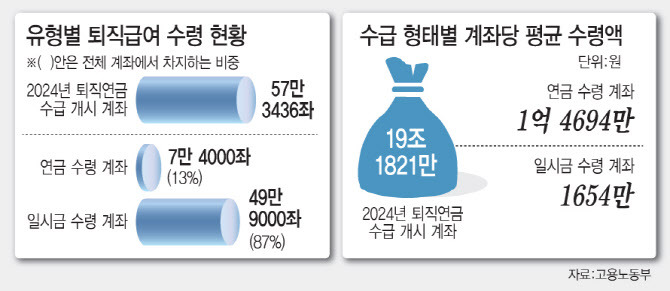 - 2024년 기준, 퇴직연금 수급자의 87%가 일시금으로 수령 (평균 1654만 원)