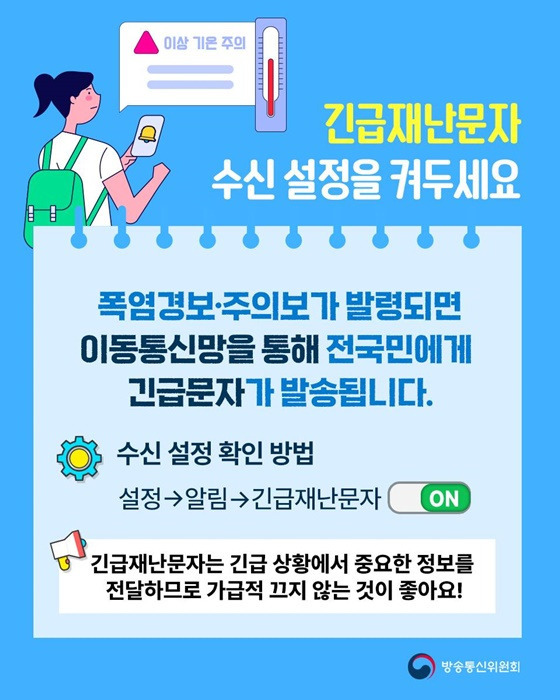 - 📱 긴급재난문자는 반드시 수신 설정 ON