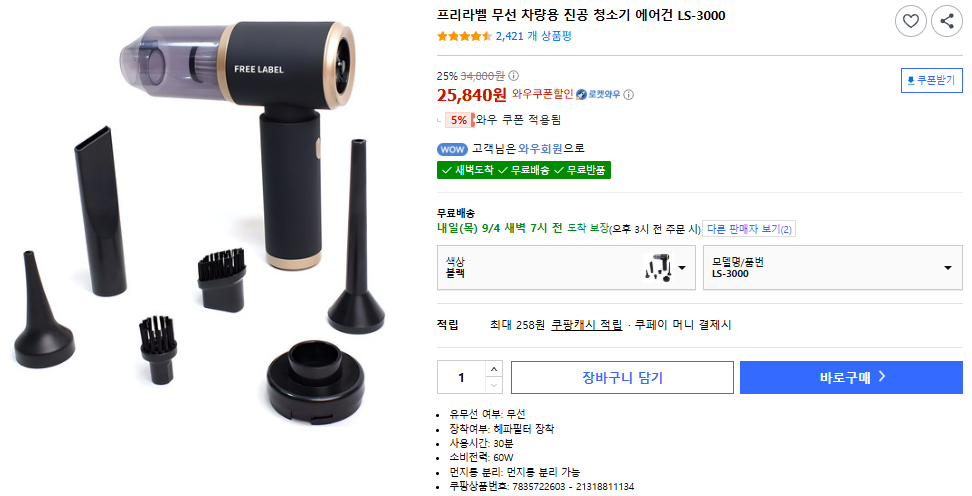 🚗 차량 청소 고민 끝! 프리라벨 LS-3000 무선 차량용 진공청소기 & 에어건 리뷰