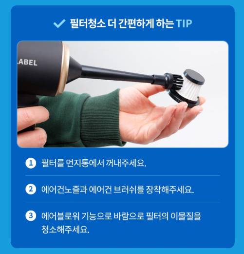 - 청소 후 필터는 분리 세척해 주기적으로 건조하면 오래 사용 가능