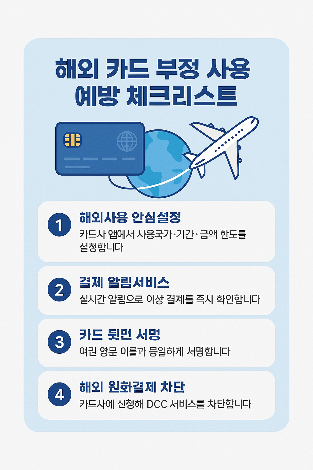 → 카드사 고객센터나 앱에서 DCC 차단 설정 가능!