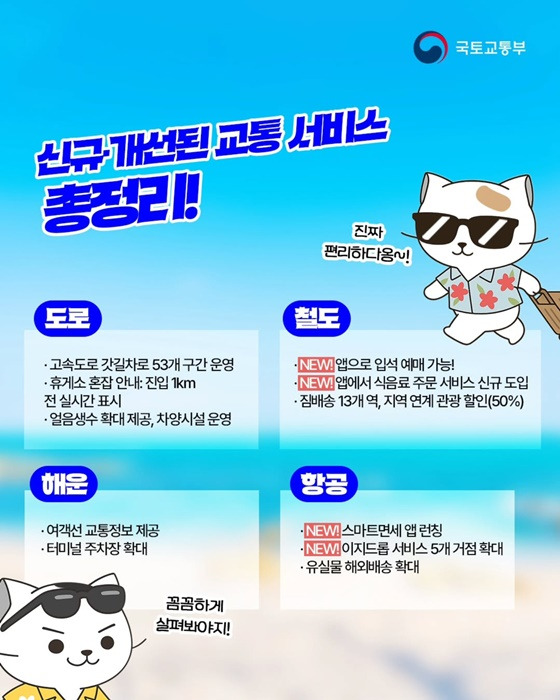 폭염도, 교통체증도 걱정 없는 여름휴가! 국토교통부의 특별교통대책으로 더 빠르고, 안전하고, 쾌적한 여름을 보내보세요 😊