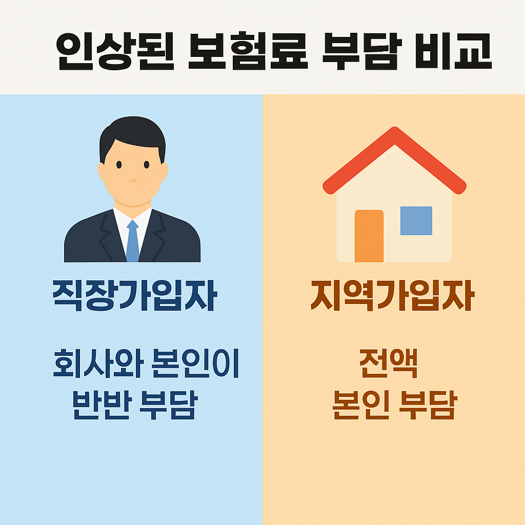 - 직장가입자: 인상된 보험료의 절반만 본인 부담 (나머지 절반은 회사 부담)