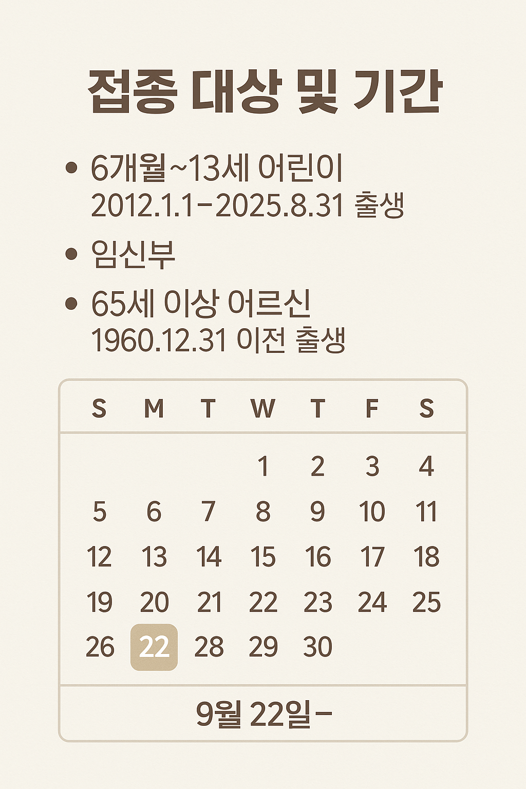 - 접종 기간: 2025년 9월 22일 ~ 2026년 4월 30일