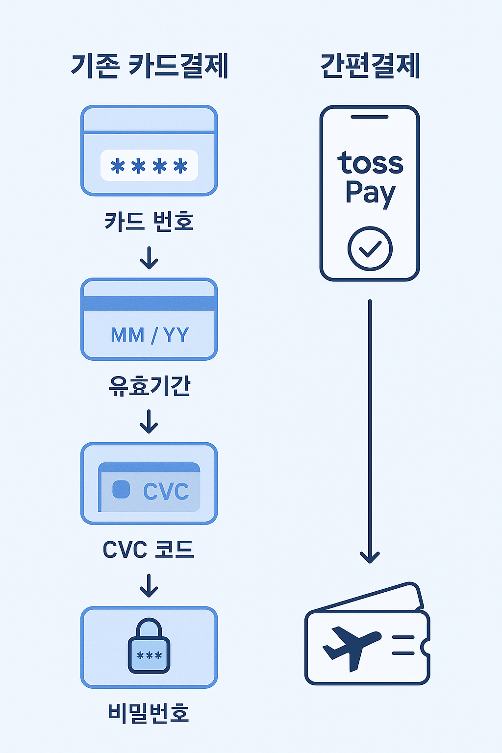 예를 들어, 기존 카드 결제는 ‘카드번호 + 유효기간 + CVC 코드 + 비밀번호’ 등 4단계를 거쳐야 했다면, 이제는 토스페이 인증 한 번으로 완료됩니다.