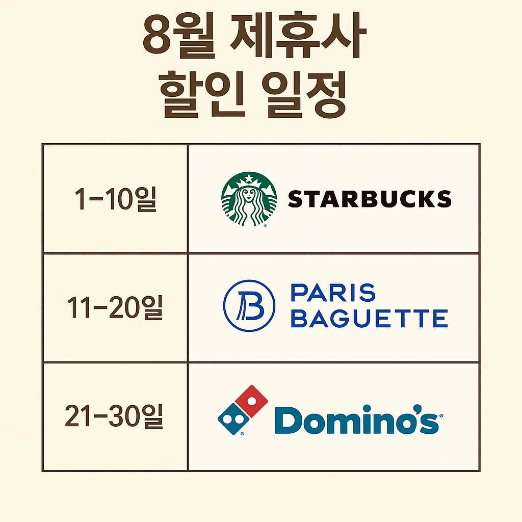 | 8월 1일~10일 | 스타벅스 | 음료 50% 할인 |